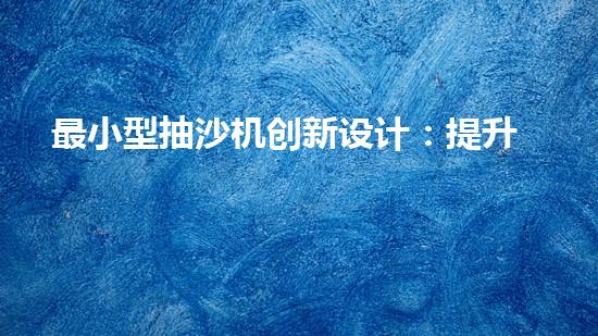 最小型抽沙機創新設計:提升效率的抽沙設備如何改變產業格局?